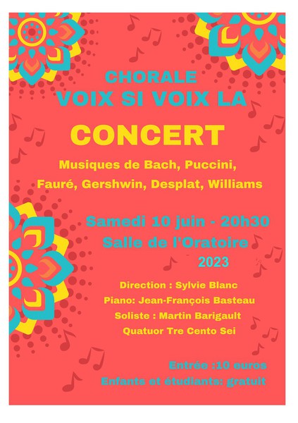 A ce propos, j’en profite pour annoncer justement le concert du 19 juin 2025 où nous serons les supplétifs heureux des chorales d’élèves de Sylvie, toujours à l’Oratoire et d’expérience je vous recommande de ne pas manquer ce grand moment. En plus chanter entre autres avec des petits de 5è ça va nous donner un coup de jeune. Ou le contraire...